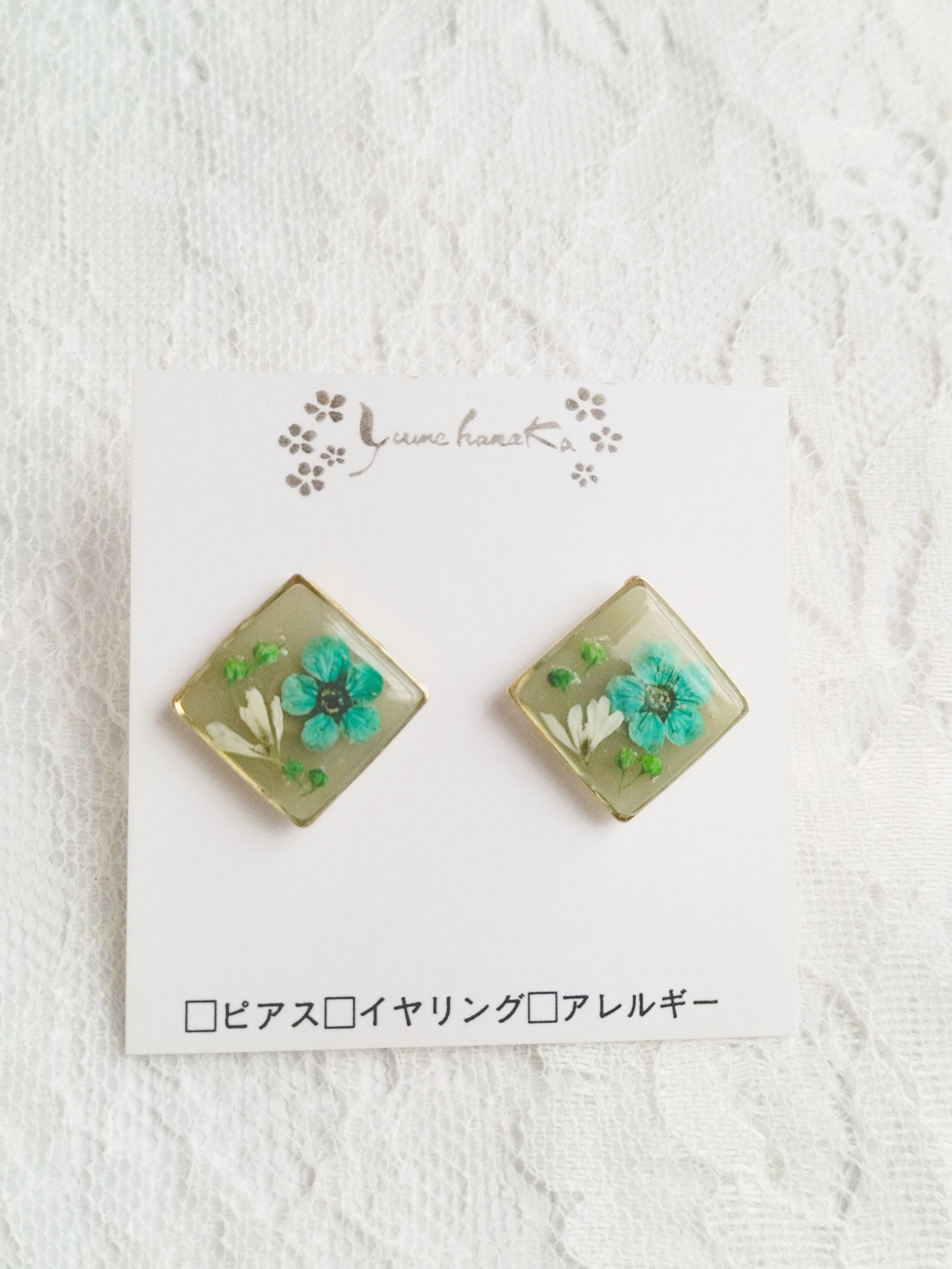 レジン(樹脂)、押し花(コデマリ、ユーフォルビア)、ソフトカスミ草