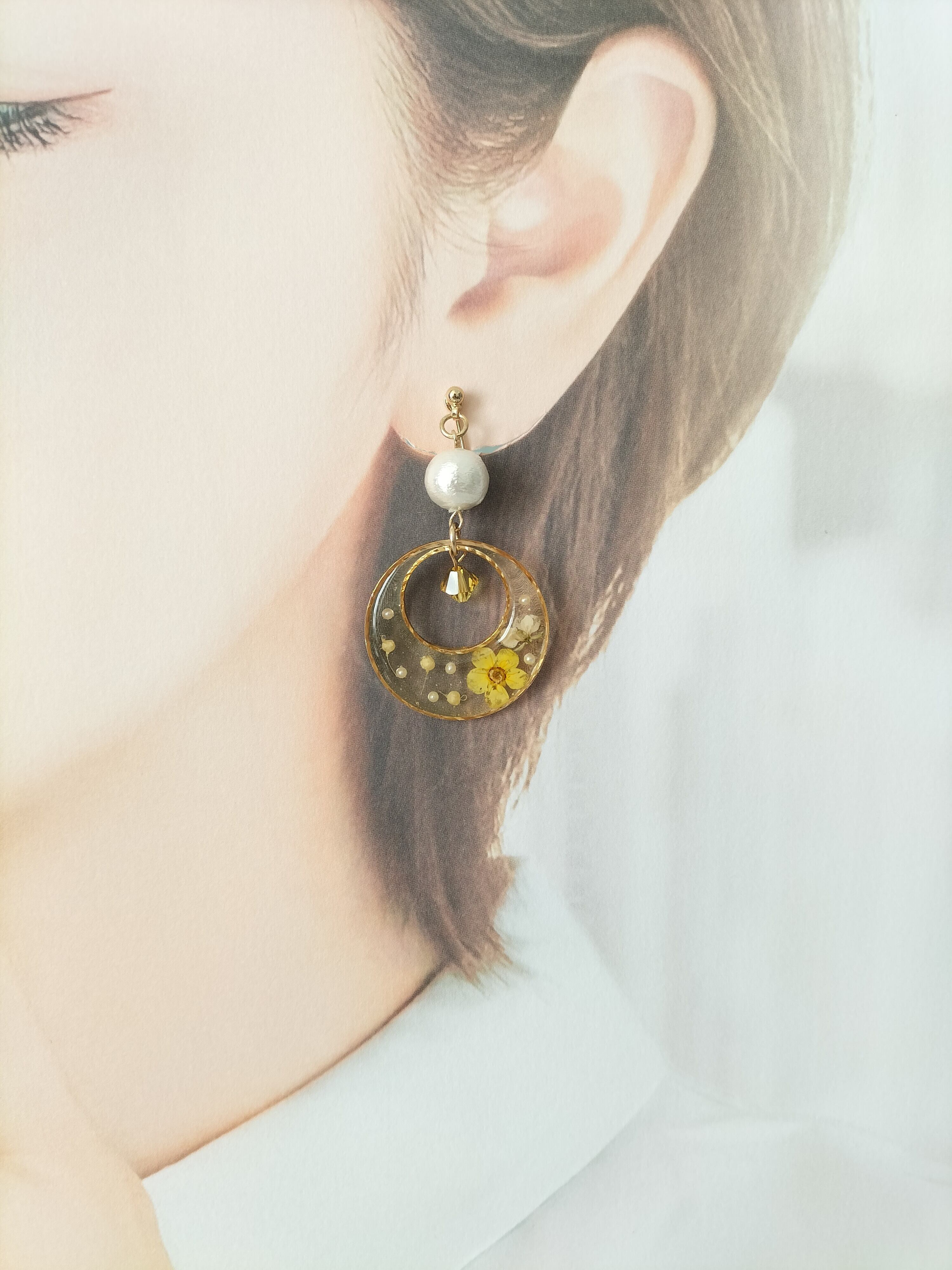 レジン(樹脂)、押し花(コデマリ、ソフトカスミ草、アリッサム)