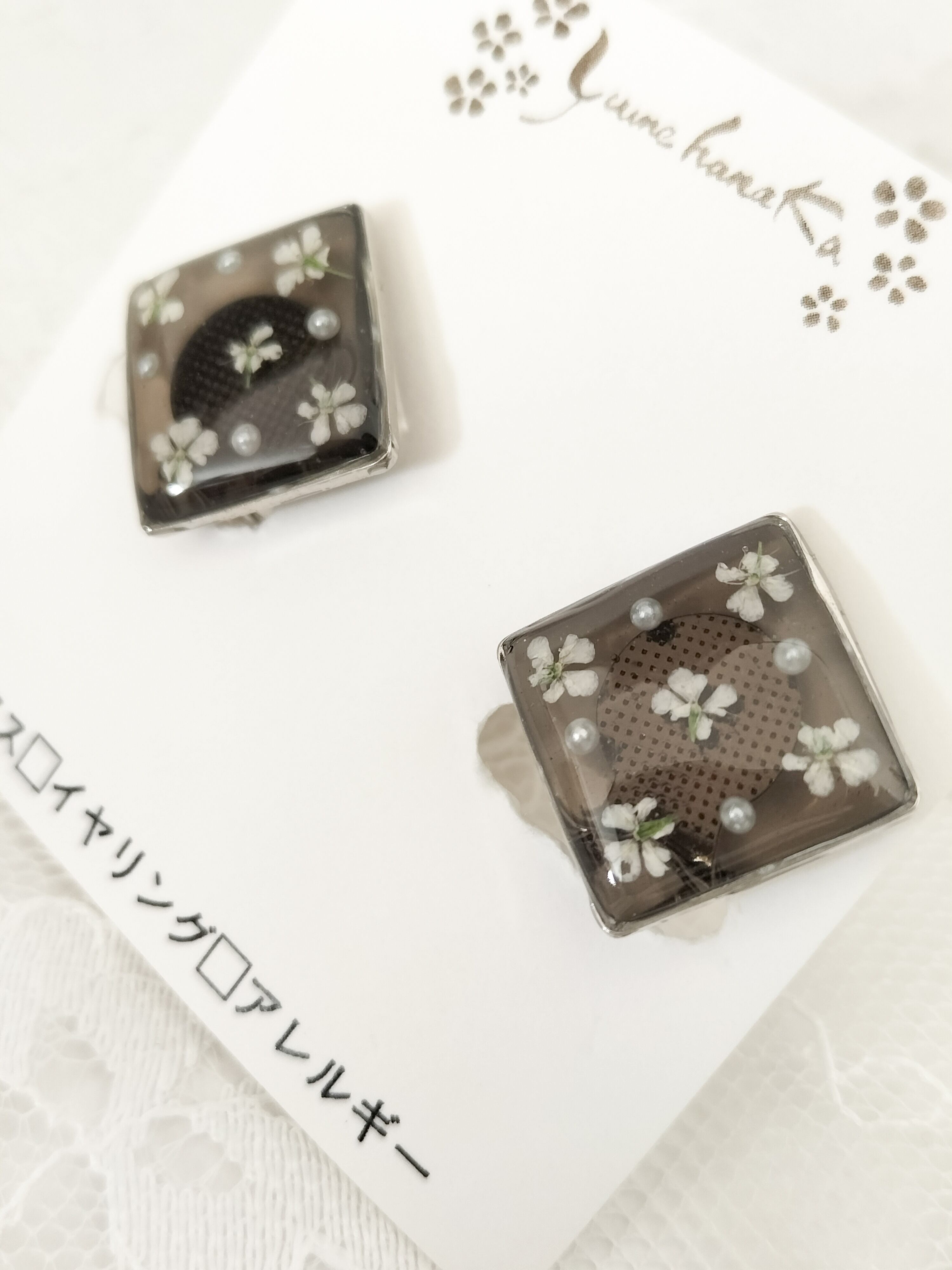 レジン(樹脂)、押し花(レースフラワー)