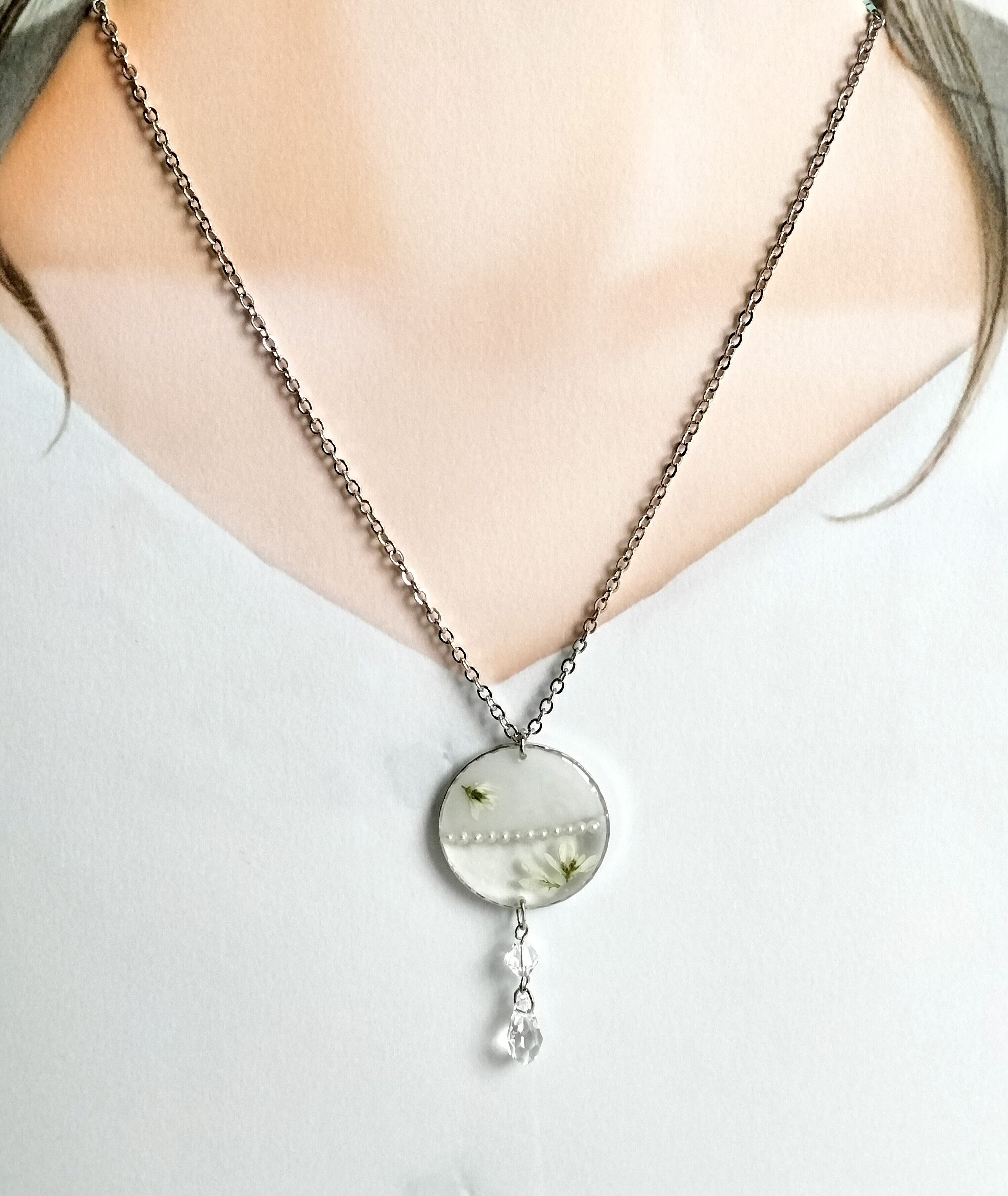 レジン(樹脂)、押し花(ユーフォルビア)、クリスタルガラス